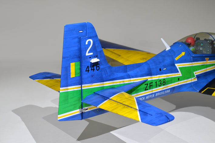A real beauty aircraft. Anyone who likes the war birds is bound to love this airplane. It has a large wing and very strong construction. Control surface size and the right tail moment promise great flying characteristics, wide speed range, slow landings and precise aerobatics. An impressive scale Landing gear is also included with the kit. It is designed exclusively for this aircraft. It is a piece of engineering of its own. The Tucano is an easy-to-assemble, easy -to-fly blast for any pilot interested in large-scale flight. Functioning scale flaps make takeoffs and landings a breeze. Factory-created scale detail like the canopy, cockpit, pilot, control surfaces.... The TUCANO ARF is part of PHOENIX MODEL's complete line of top-quality aircraft and accessories.